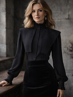 Mulheres Camisa Social Elegant Top de cetim Blusa Franzido Patchwork Botões Côr Sólida Tecido Elegante Vintage senhoras Manga Longa Colarinho de Camisa Tops regulares Diário Trabalho Feriado Preto