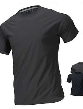 Homens Camiseta Camisa de manga curta T-shirt Manga Curta Gola Redonda Verão Primavera Côr Sólida Roupa de rua à moda Lazer Secagem Rápida Delgado Diário Ao ar livre Férias Preto Cinzento Claro Top