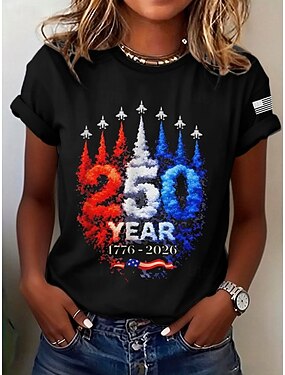 Dia da Independência Aniversário Americano Patriótico Camiseta Feminina Estampa Gráfica Bandeira Letra Estilosa Clássica Casual Manga Curta Decote Redondo Tamanhos Regulares Diários Azul Preto