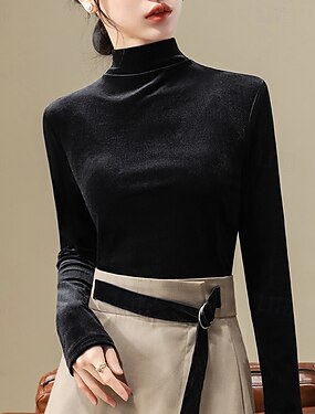 Mulheres Veludo Elegant Elegante Blusa Côr Sólida Tecido Elegante Diário à moda Manga Longa Pescoço Tops regulares Diário Feriado Para Noite Preto Vinho Roxo Marron Outono Inverno