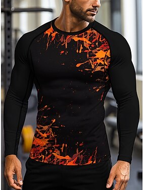 Homens Abstrato Camiseta de Corrida Camisa Atlético camisa de ginástica Camisa Fitness Camisa de treino Verão Primavera Outono Inverno Manga Longa UPF 50 Resistente a UV FPS 50+ Macio Redutor de Suor