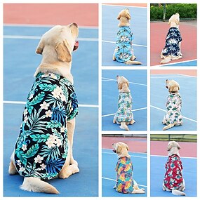 Camisa de verão estilo havaiano em poliéster para animais de estimação, com fecho de pressão, para cães de porte médio e grande.
