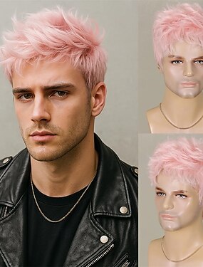 Peruca curta masculina marrom, mistura de loiro, fofo, ondulado, em camadas, cosplay, festa de rock, fantasia de halloween, cabelo sintético