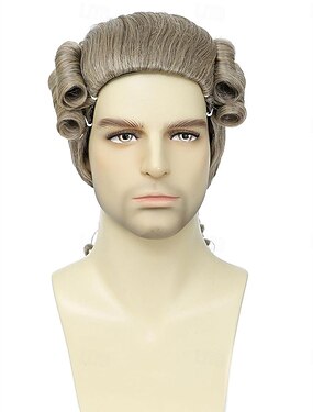 Peruca Branca de Juiz para Homens Perucas Coloniais para Fantasia de Pais Fundadores Cosplay