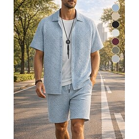 Homens Camisa Social Camisa casual Camiseta de Veludo camisa de botão Preto Branco Amarelo Azul Marinha Marron Manga Curta Tecido Textura Colarinho de Camisa Casual Diário Bolso frontal Roupa