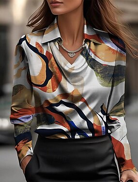 Mulheres Camisa Social Imprimir Com Pregas Gráfico Bloco de cor Elegante à moda Casual Manga Longa Gola Boba Tops regulares Diário Escritório Trabalho Cinzento Primavera Outono