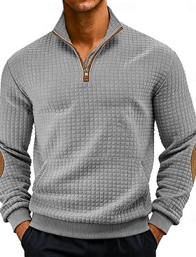 Homens Moletom com zíper Moletom Waffle Estacionar Preto Branco Azul Marinha Cáqui Cinzento Escuro Meio Zíper Tecido Zíper Bolsos Trabalho Desportos e Ar livre Casual não imprimível Ativo Vintage