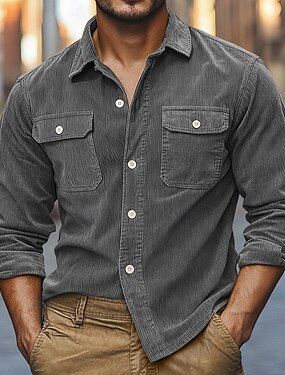 Homens Camiseta de Veludo Preto Roxo Marron Cinzento Manga Longa Tecido Colarinho Aberto para a Lateral Casual Ao ar livre Bolsos Roupa Vintage Clássico Casual