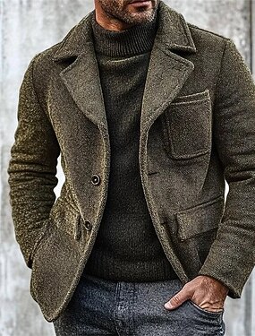 Homens Casaco exterior Casaco de lã Formal Casa Manter Quente Bolsos Outono Inverno Côr Sólida Ativo Neutra Colarinho de Camisa Padrão Preto Verde cáqui Azul Escuro Cinzento Casaco