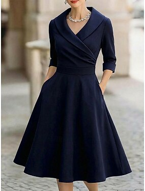 Mulheres Vestido midi Vestido elegante Elegante Moda Moderno Escritório Para Noite Normal Tecido Manga Longa Colarinho de Camisa Preto Branco Vinho Roxo Primavera Outono Inverno