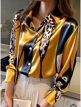 Mulheres Camisas de trabalho Gráfico Geométrica Elegante à moda Básico Manga Longa Colarinho de Camisa Tops regulares Diário Trabalho Traje de festa para noite Amarelo Rosa Cáqui Primavera / Outono