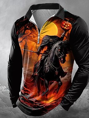 Homens Abóbora Camisas Polo com zíper Camisas polo Lapela Casual Terror Escuro Ao ar livre Traje de festival Impressão 3D Primavera Outono Inverno Preto Amarelo Laranja