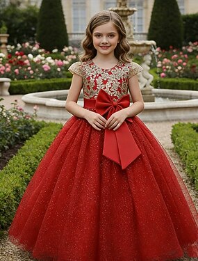 Vestido para Meninas das Flores Para Meninas Vestido formal Traje de casamento Festa Casamento Formal Elegante Moda Lindo Com Transparência Côr Sólida Sem Manga Gola Redonda Azul Vermelho 4 anos +