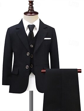 Terno para pajem, terno infantil para meninos, blazer &colete & calça &Terno formal infantil com gravata, estilo casual para festas ao ar livre, básico, em cores sólidas, com bolsos e botões, nas