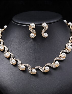 Conjunto de Jóias 3pçs Strass Liga Brincos Colares Mulheres Elegante Vintage Moda Geométrico Forma Geométrica Conjunto de jóias Para Casamento Festa Aniversário