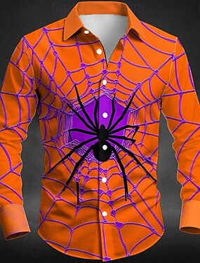 Camisa de botão de manga longa com fantasias de teia de aranha para homens estilo gótico escuro vestuário ao ar livre para feriados de verão e primavera com impressão 3D colarinho laranja verde e rosa