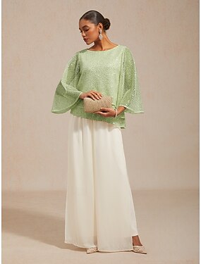 Mulheres Tops de renda Paetês Transparente Côr Sólida Elegante à moda Manga 3/4 Sino Gola Redonda Tops longos Diário Convidado do casamento Roupas de férias Caçador Verde Verão Primavera Outono