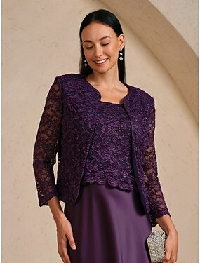 Mulheres Elegante Festa à moda Casamento Floral Gola Redonda Normal agasalhos Beringela Outono Inverno