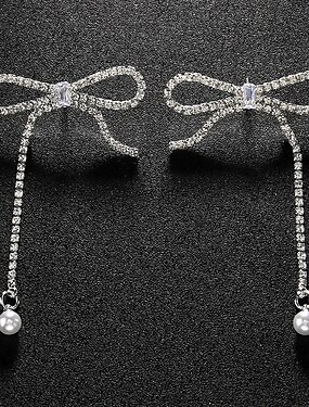 Mulheres Brincos Curtos Franjas Precioso Com Laço Estilo bonito à moda Pérola Imitações de Diamante Brincos Jóias Prata / Dourado Para Casamento Festa Presente Diário 1 par