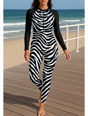 Mulheres Padrão Anti Atrito Trajes de banho de corpo inteiro Segunda-pele para Mergulho Folk Zíper Frontal UPF50+ Secagem Rápida Elasticidade Alta Manga Longa Roupa de Banho Surfe Canoagem Mergulho
