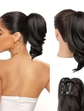 Rabo de cavalo com presilha para mulheres - extensão de rabo de cavalo cacheado de 30 cm, extensões de cabelo com rabo de cavalo ondulado, extensões de cabelo sintético com rabo de cavalo, rabo de