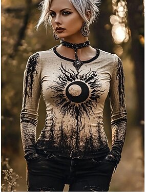 Camiseta Boho Feminina Gráfica Viking Vintage Boêmia Moda Vintage Manga Longa Gola Careca Tops Regulares Diários Fim de Semana Impressão Preto Primavera Outono Inverno