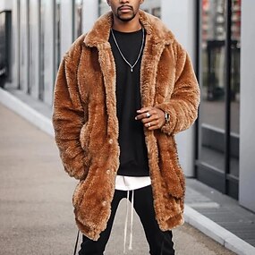 Homens Casaco de lã Casaco de pelúcia Ao ar livre Roupa Diária Quente Botão Bolsos Outono Inverno Tecido Moda Roupa de rua Lapela Padrão Marron Casaco