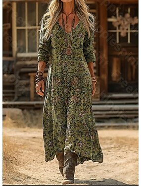 Vestido maxi de linho de algodão feminino Vestido shift Vestido casual Diário Ajuste regular Liso Manga 3/4 Gola redonda Azul Branco Vermelho Verde escuro Verão Primavera Outono