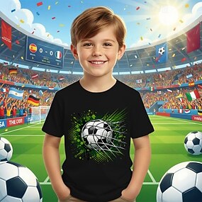 100% Algodão Infantil Para Meninos Preto Branco Gráfico Futebol Americano Camisetas de futebol Camisa Blusa Gola Redonda Manga Curta Ao ar livre Streetwear Esportes Moda Roupa de rua Designer
