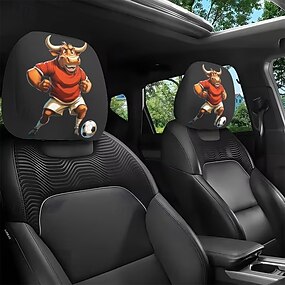 Conjunto de 2 capas para encosto de cabeça de carro com estampa de animais de desenho animado jogando futebol. Decoração interna para carro, design elástico, tamanho universal, ideal para