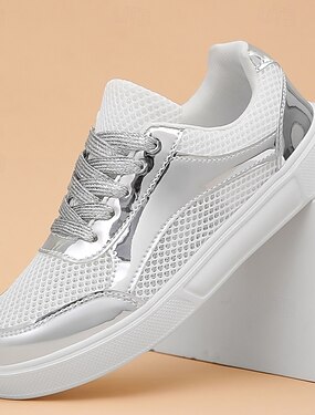 Tênis masculino de couro sintético branco com detalhes em mesh – calçado esportivo leve e estiloso para atividades casuais, esportivas e do dia a dia.