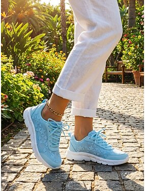 Tênis femininos de lona jeans com cadarço – calçados casuais de cano baixo para caminhadas e uso diário