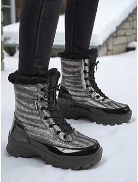 Botas de neve quentes femininas com forro de pele sintética – calçados de inverno impermeáveis e antiderrapantes para neve ao ar livre e clima frio