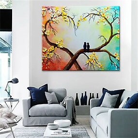 pintura a óleo flor pintada à mão pássaros do amor animais horizontais floral / botânico moderno tela enrolada (sem moldura)
