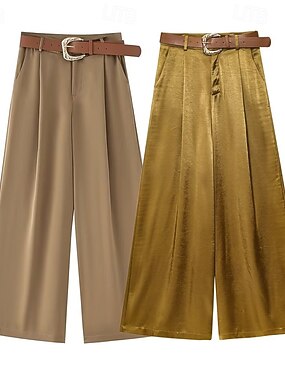 Mulheres Perna larga Calças Calça Palazzo Moda Roupa de rua Comprimento total Cintura Alta Tecido Respirabilidade Confortável Rua Roupa Diária Para Noite Amarelo Cáqui Primavera Outono Normal