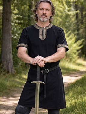 Medieval Renascentista Até os Joelhos Cinto Túnica Mangas curtas Viking Ranger Fantasia Unisexo Celta Viking Dia Das Bruxas Carnaval feira renascentista LARP Adulto Blusa Cinto Todas as Estações