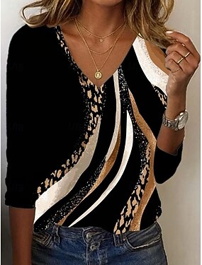 Mulheres Túnica Camiseta Imprimir Leopardo Bloco de cor Letra Vintage à moda Casual Manga Longa Decote V Tops regulares Diário Esportes Final de semana Azul Rosa Marron Verde Outono