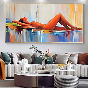 Pintura abstrata de mulher nua em tamanho grande, feita à mão, em tela, com aquarela, pôsteres e pinturas de arte moderna sobre mulheres nuas.