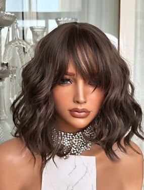 Cabelo humano remy Fechamento 5x5 13x4 Lace Front Peruca Bob curto Com Franjas Cabelo Brasileiro Ondulado Marrom Ruivo Peruca 130% 150% Densidade do Cabelo com o cabelo do bebê Cabelo Ombre Riscas