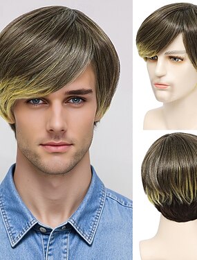 Perucas sintéticas Ondulado Kinky Liso Bob curto Corte em Camadas Com Franjas Fabrico à Máquina Peruca 10 polegadas Castanho Claro Cabelo Sintético Homens Clássico Confortável Cores Gradiente Multi