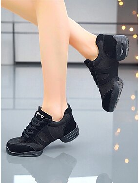 Tênis de dança jazz de malha preta para mulheres - calçados leves e respiráveis para prática profissional de dança latina, hip hop e dança de salão