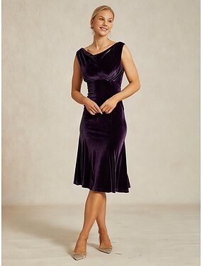 Mulheres Vestido midi Vestidos De Sereia Trompete Elegante Festa Convidado do casamento Coquetel Normal Côr Sólida Sem Manga Gola Boba Beringela