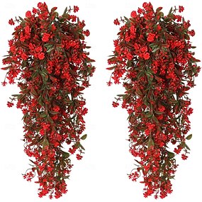 Conjunto de 4 flores artificiais verdes de plástico, trepadeiras artificiais para pendurar, resistentes aos raios UV, ideais para paredes de jardins externos, escritórios, casamentos, festas e