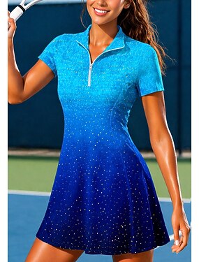 Mulheres Gradiente Vestido de tênis Vestido esportivo Manga Curta Imprimir Respirável Tênis Golfe Badminton Colarinho Colarinho polo Vestidos Azul Real Roupas de tênis