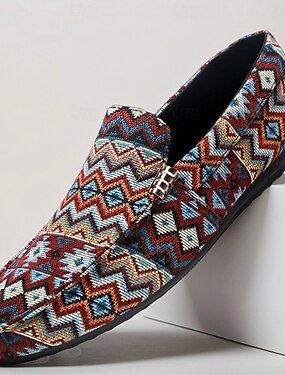 mocassins masculinos jacquard multicoloridos com padrão ziguezague – calçados casuais slip-on da moda para festas, férias e uso em resorts de verão