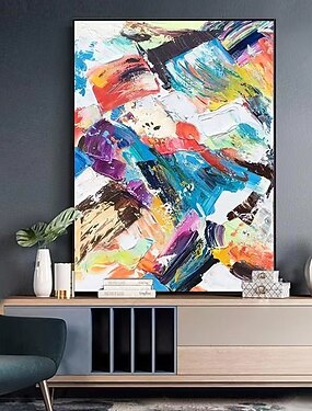 Pintura a óleo artesanal em tela, arte de parede, decoração abstrata moderna para sala de estar, decoração de casa, pintura sem moldura enrolada