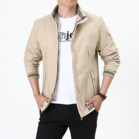 Homens jaqueta leve jaqueta de verão Jaqueta Corta-Vento Jaqueta de Transição Diário Esportes Respirável Bolsos Primavera & Outono Cor Sólida Casual Colarinho Chinês Fina Padrão Algodão Normal Preto