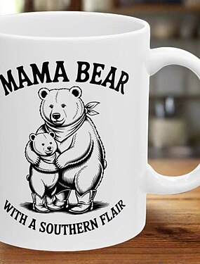 Caneca divertida para presentear a mãe no Dia das Mães, caneca de cerâmica surpresa com estampa de mamãe ursa e um toque sulista, caneca de café fofa e exclusiva para o Dia das Mães.
