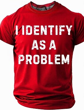 Camiseta Gráfica Masculina Engraçada Sarcástica Estilo de Vida 'Eu Me Identifico Como um Problema' Manga Curta
