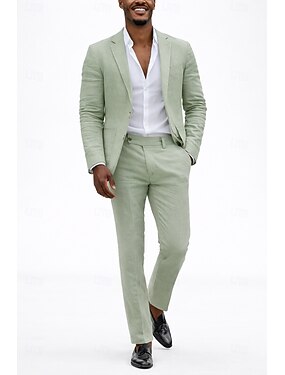 Masculino Smoking ternos de linho casamento na praia Casamento na primavera Azul Verde Primavera Verão Terno Lapela Chanfrada Moda Festa Cor Sólida Moderno Conjunto de 2 peças Comum 2 Botões
